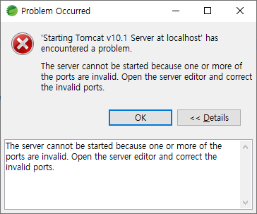 포트 충돌이 가장 흔한 원인 중 하나입니다. Tomcat이 기본적으로 사용하는 포트(예: 8080)가 다른 프로그램에 의해 사용되거나 이미 Tomcat이 실행 중일 수 있습니다.