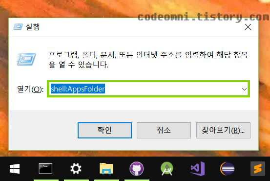 ▲ 실행창에 열기(O) 부분에 "shell:AppsFolder" 를 입력합니다.