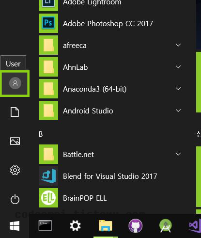 ▲ 시작 표시줄 왼쪽에 있는 사용자 버튼을 클릭합니다.
