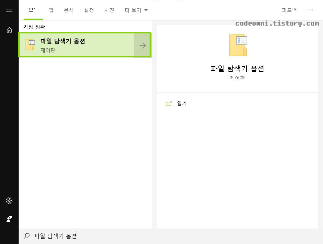 ▲ 파일 탐색기 옵션은 검색해서 들어가거나 제어판 메뉴를 사용하여 들어갈 수 있습니다.
