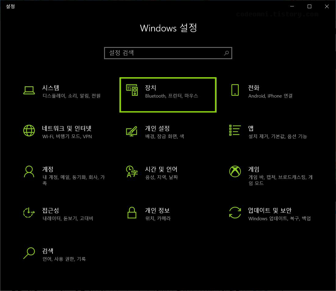 ▲ 장치 : Bluetooth, 프린터, 마우스를 클릭합니다.