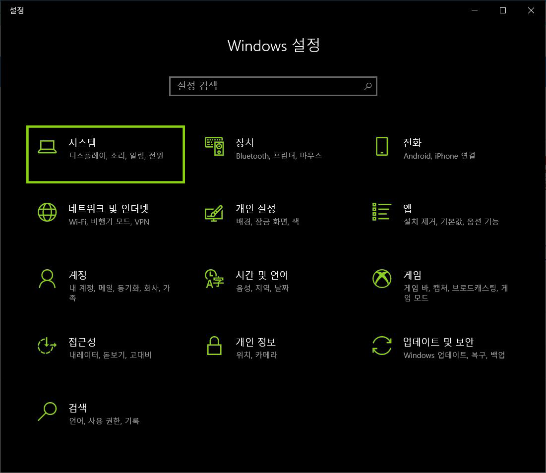 ▲ 시스템 : 디스플레이, 소리, 알림, 전원을 클릭합니다.