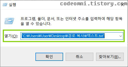 ▲ 파일의 경로가 복사 되었는지 실행 창을 통해 확인합니다.