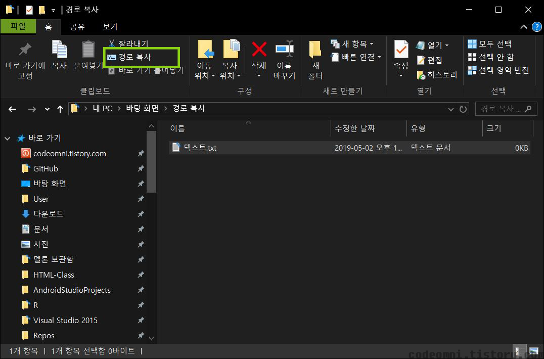 ▲ 파일의 경로를 복사하기 위해서는 위쪽 탭에 있는 경로 복사 버튼을 클릭합니다.