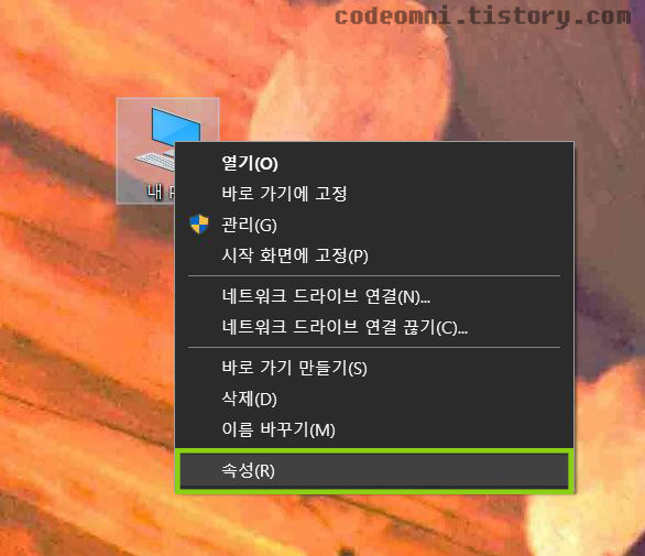 ▲ 메뉴 중에서 속성(R)을 클릭합니다.