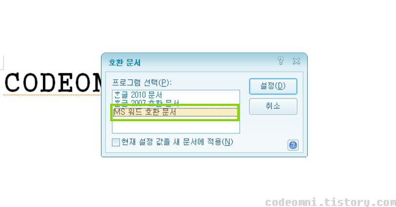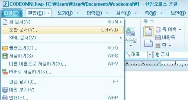 ▲ 파일(F) - 호환 문서(Y)를 들어가서 MS 워드 프로그램에 맞는 문서 형식으로 변환합니다.