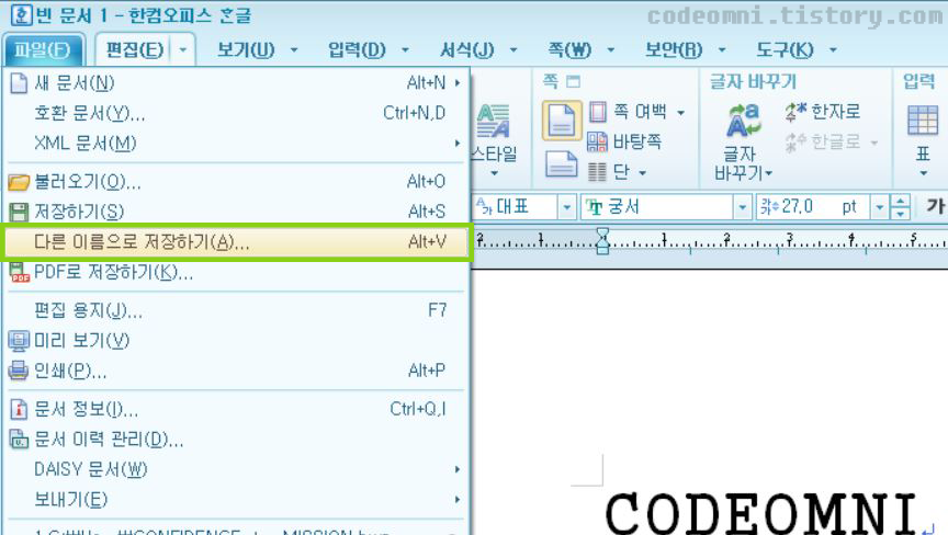 ▲ 설정 후 파일(F) - 다름 이름으로 저장하기(A)를 클릭합니다.