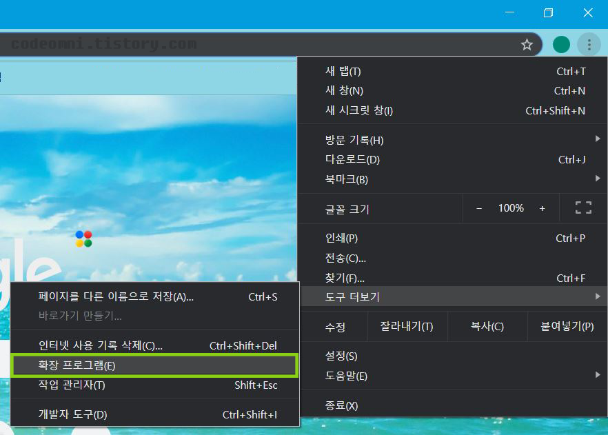▲ 도구 더보기 - 확장 프로그램(E)를 선택합니다.
