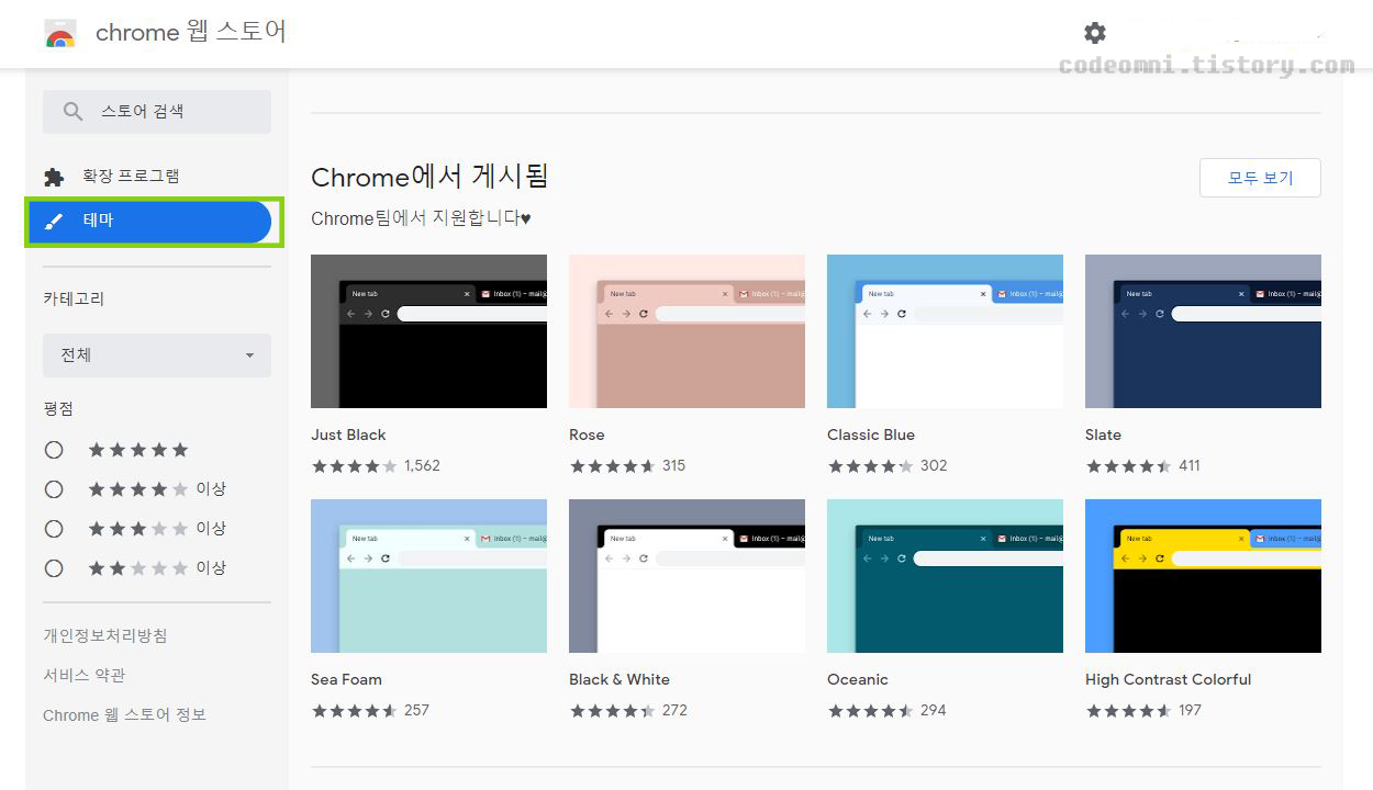▲ Chrome 웹 스토어의 왼쪽에 위치한 네비게이션의 테마를 클릭합니다.