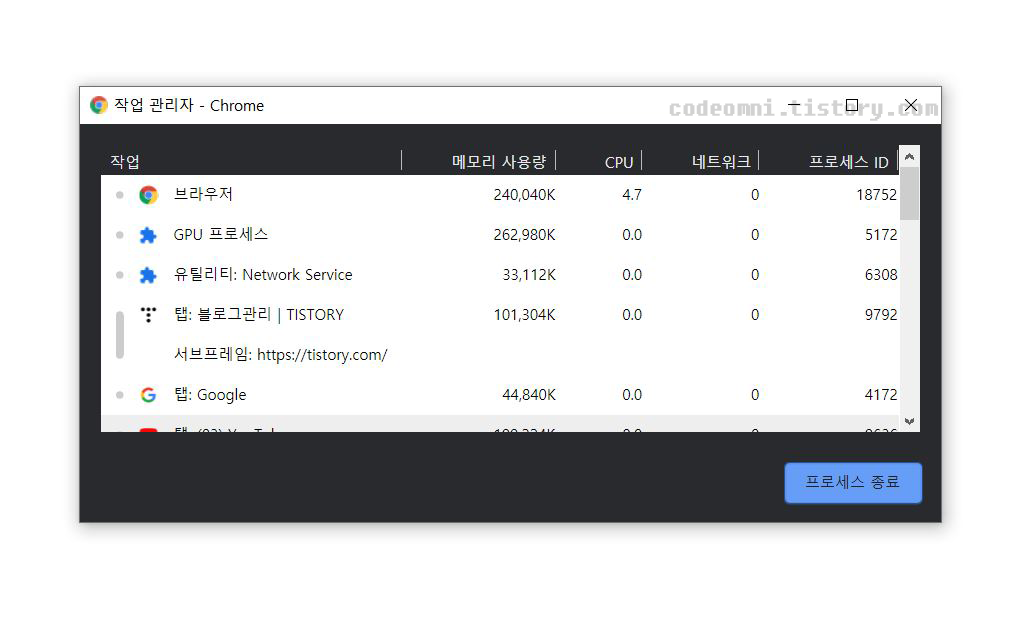 이번 포스팅은 크롬에서 작업관리자 사용하기입니다.