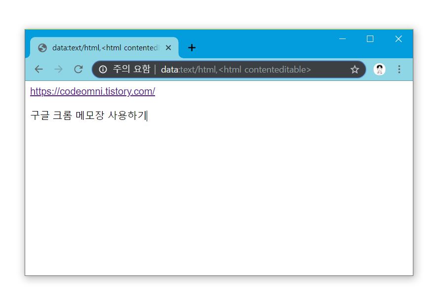 ▲ 크롬 검색창에 data:text/html,<html contenteditable>를 입력하시면 메모장이 실행됩니다.