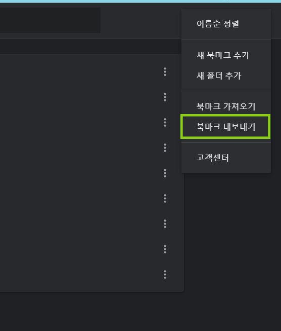 ▲ 오른쪽 상단 메뉴를 클릭하여 북마크 내보내기를 선택합니다.