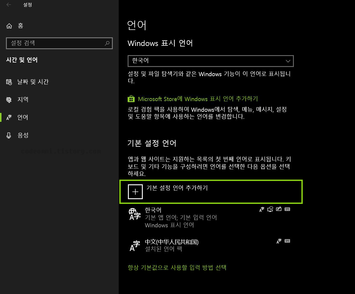 ▲ 기본 설정 언어에 기본 설정 언어 추가하기를 클릭합니다.