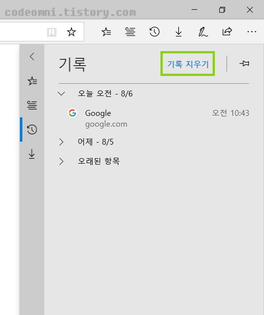 ▲ 기록 지우기 버튼을 클릭하면 방문 기록들을 지울 수 있습니다.