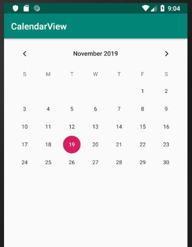 ▲ 캘린더 뷰 위젯을 사용한 어플리케이션의 디스플레이입니다.