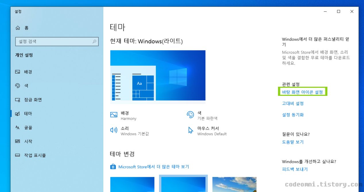 ▲ 관련 설정에 있는 바탕 화면 아이콘 설정을 클릭합니다.