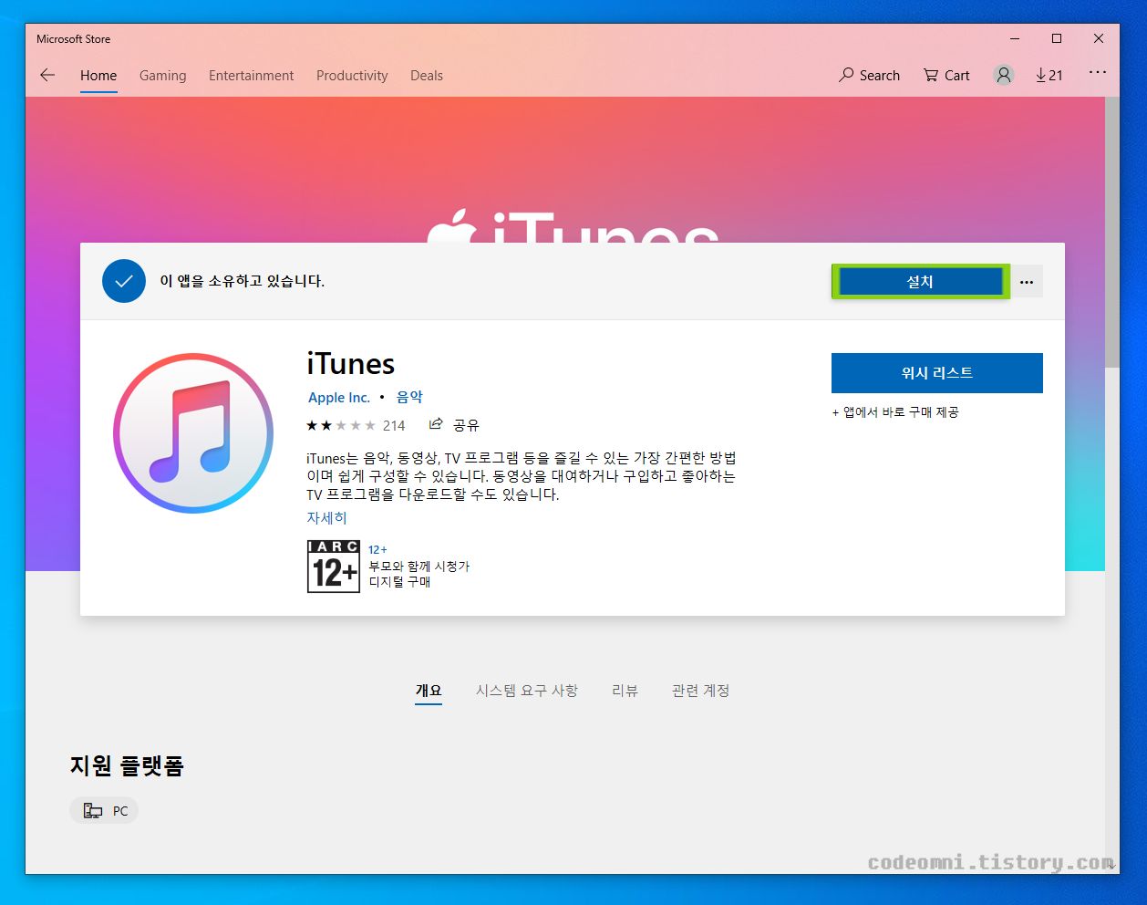 이번 포스팅은 윈도우10에서 아이튠즈 다운로드 후 설치하기입니다.