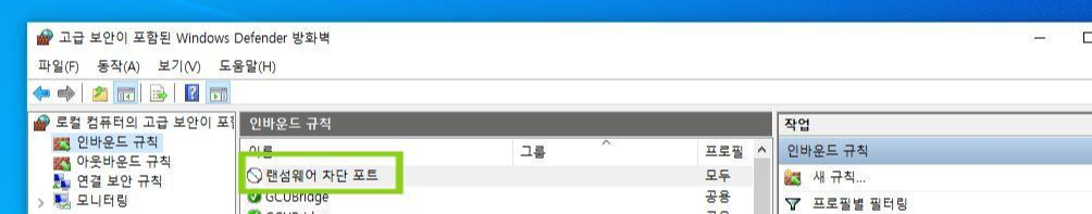 ▲ 인바운드 규칙에 새 규칙이 추가됩니다.