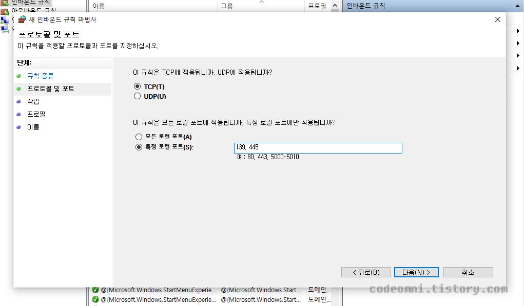 ▲ TCP에는 특정 로컬 포트 139, 445 포트입니다.