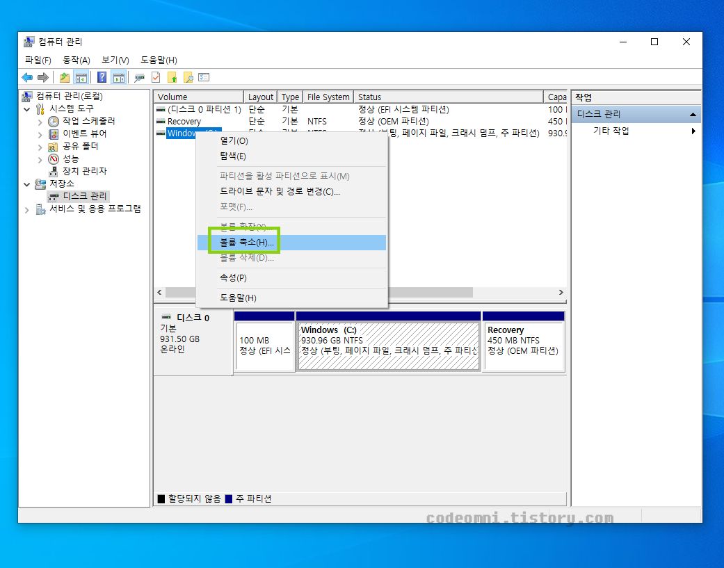 이번 포스팅은 윈도우10에서 파티션 나누기입니다.