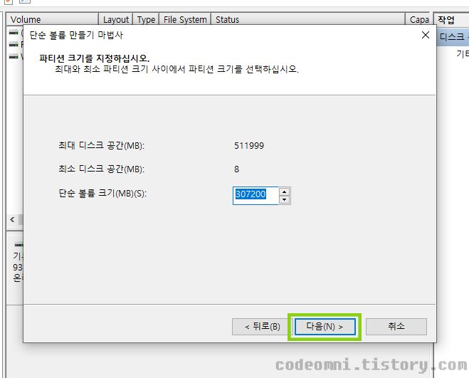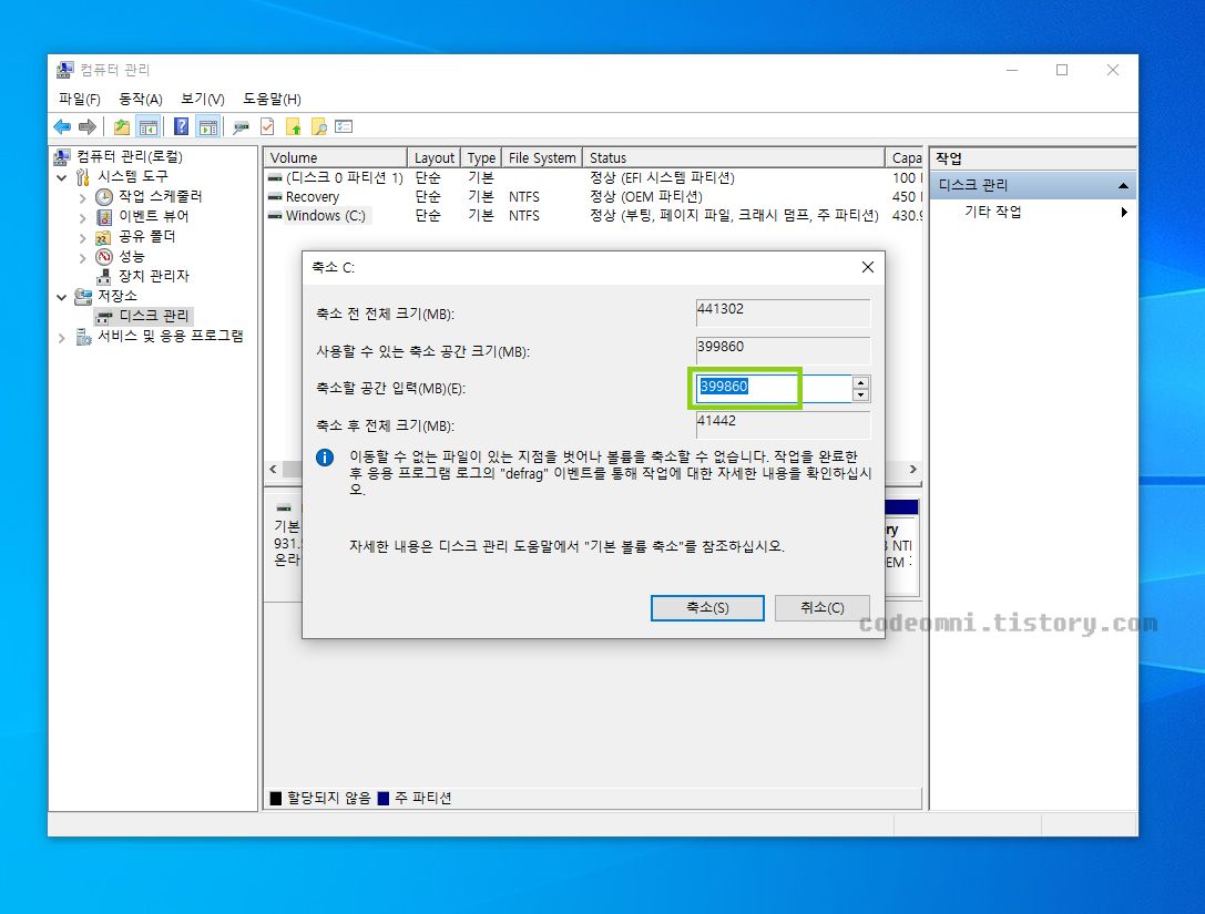 ▲ 기본적으로 꽉 차있는 디스크의 용량을 먼저 줄입니다.