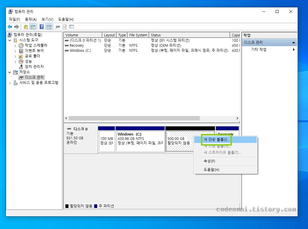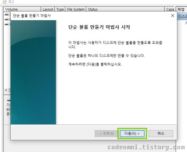 ▲ 오른쪽 마우스 버튼을 클릭하여 새 단순 볼륨(I)를 선택합니다.