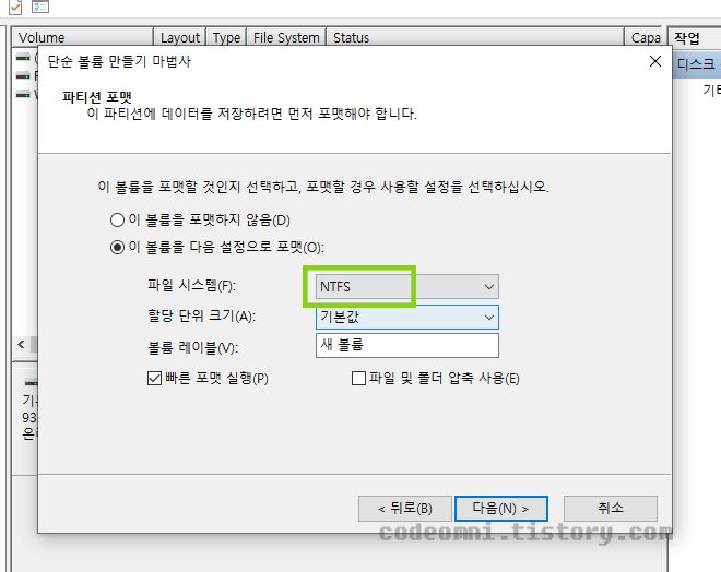 ▲ 파일 시스템(F)를 NTFS로 설정합니다.