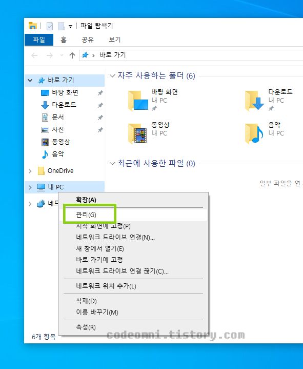 ▲ 내 PC를 선택한 후 마우스 오른쪽 버튼을 클릭합니다.