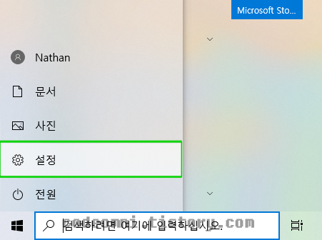 ▲ 설정은 윈도우 키나 버튼을 클릭합니다.