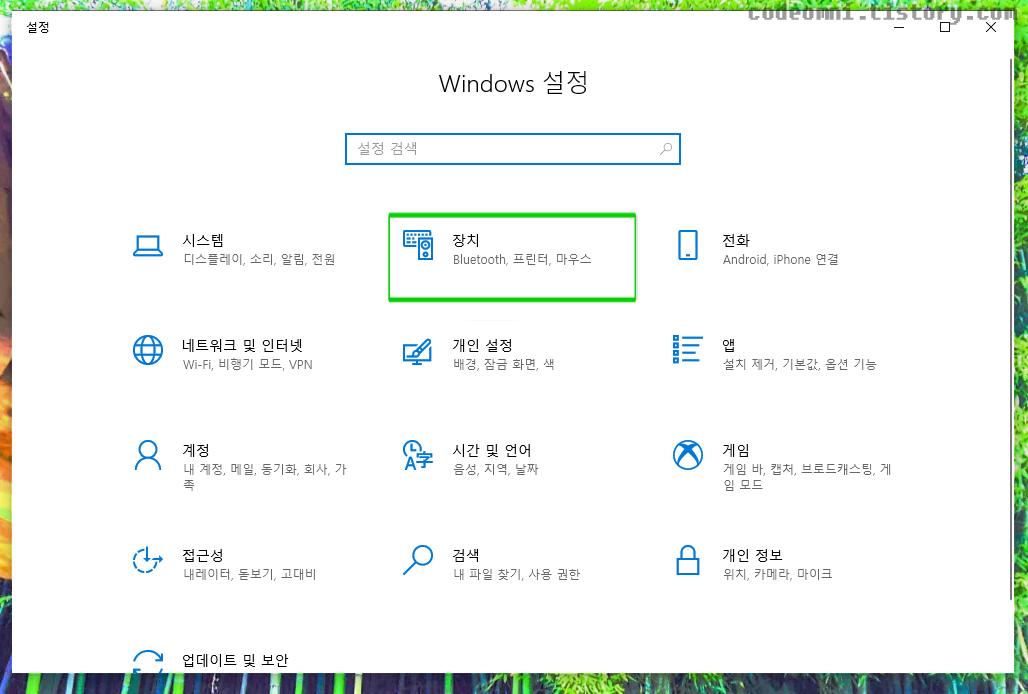 ▲ 설정은 검색을 통해 들어갈 수 있습니다.