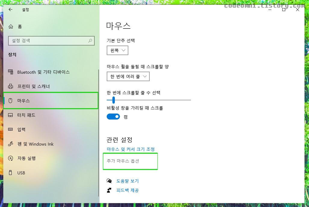 ▲ 마우스 관련 설정 중에 추가 마우스 옵션을 클릭합니다.