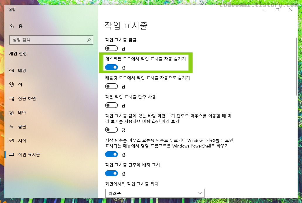 이번 포스팅은 윈도우10 에서 간단하게 작업표시줄 자동으로 간단하게 숨기기입니다.