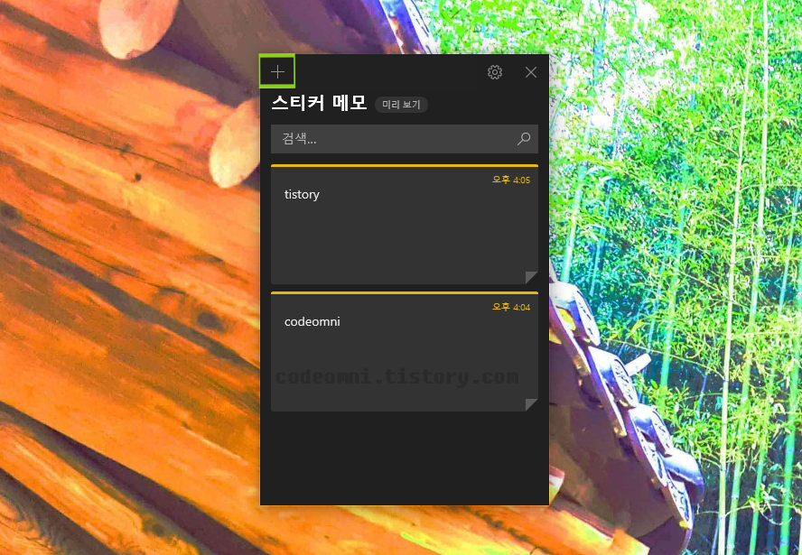 ▲ + 버튼을 클릭해서 새로운 메모를 추가할 수 있습니다.