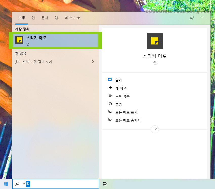▲ 검색 창에 스티커 메모를 검색합니다.