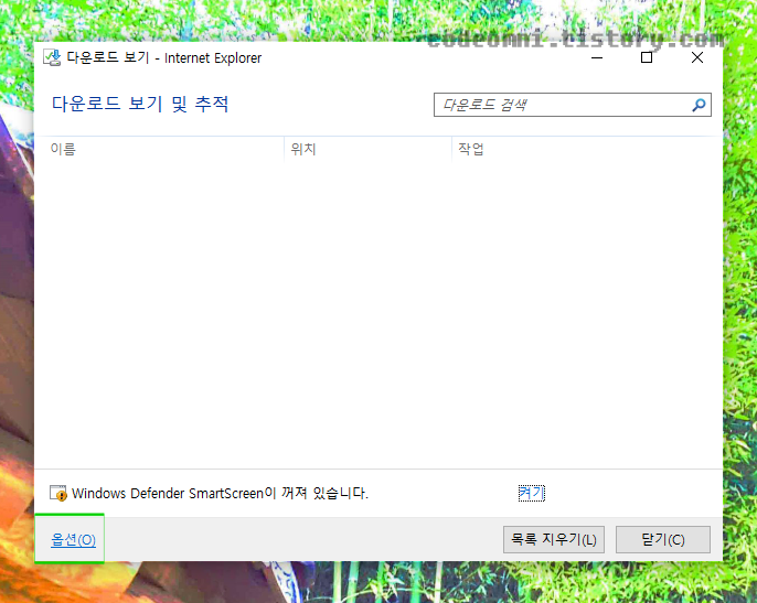 ▲ 다운로드 보기 창에서 하단에 있는 옵션(O)를 클릭합니다.