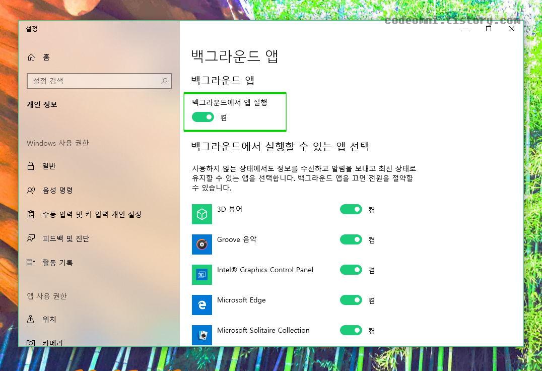 이번 포스팅은 윈도우10 에서 간단하게 백그라운드 앱 설정하기입니다.
