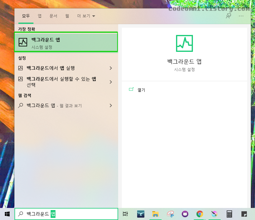 ▲ 검색 창에 백그라운드 앱을 검색합니다.
