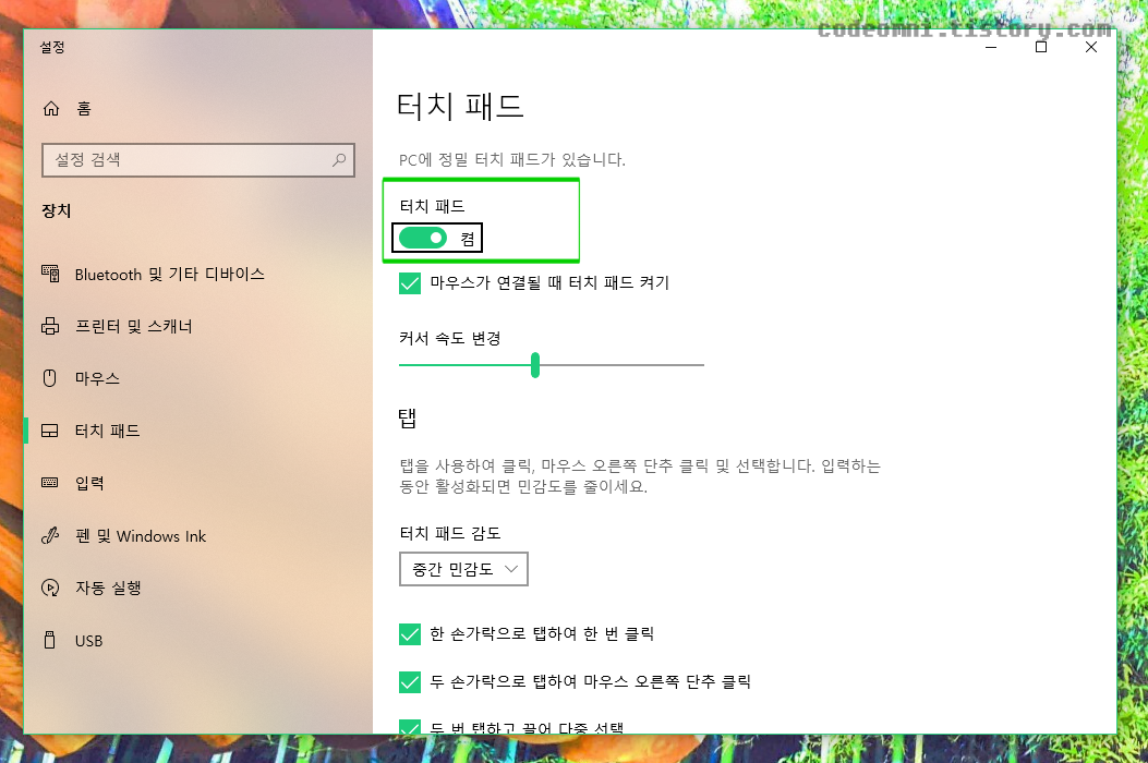 ▲ 설정 - 장치 - 터치 패드로 들어갈 수 있습니다.