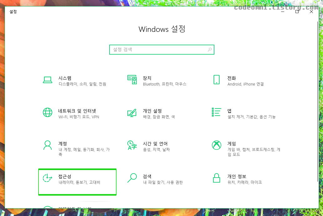 ▲ Windows 설정 중 접근성을 클릭합니다.