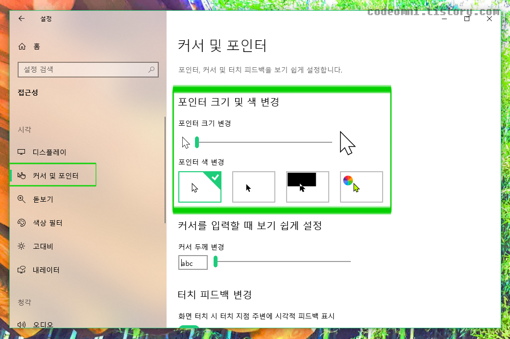 ▲ 포인터 크기와 포인터 색을 변경할 수 있습니다.