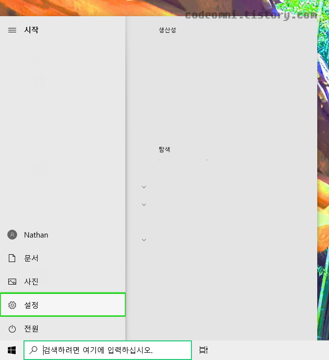마우스 포인터 크기 및 색상을 변경하기 위해서 설정에 들어갑니다.