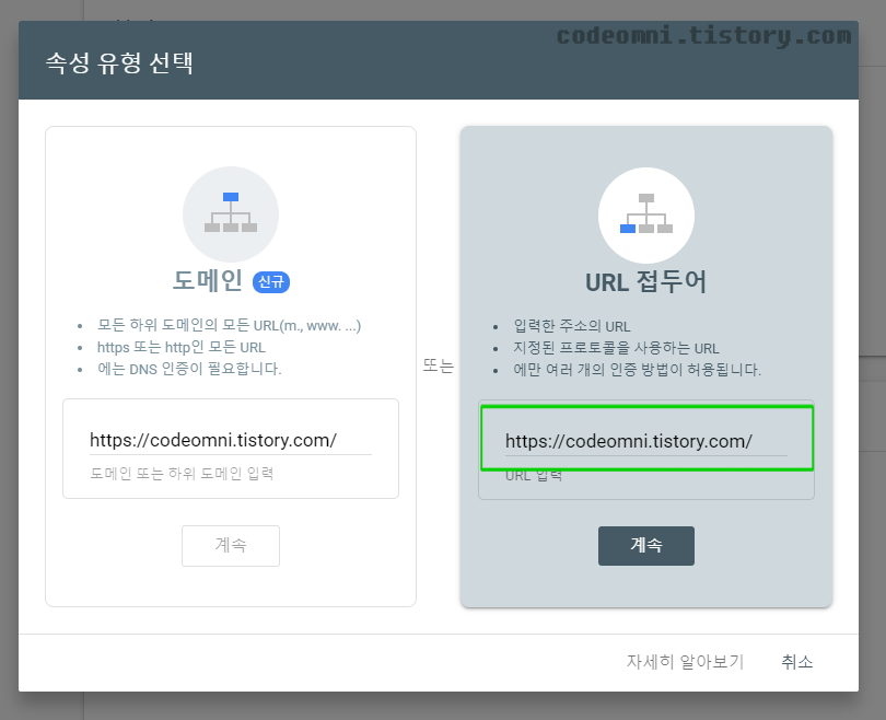 ▲ URL 접두어에 구글 검색 엔진에 등록할 주소를 URL 입력합니다.