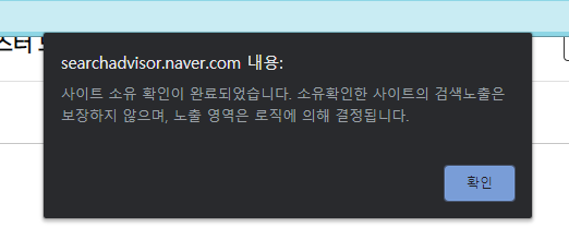 ▲ 잠시 후 소유확인 버튼을 클릭하면 소유권이 확인됩니다.