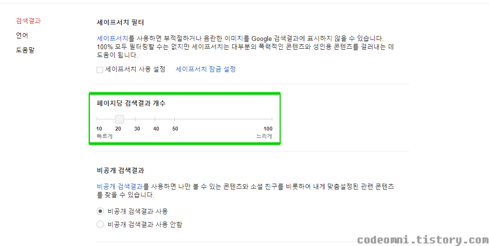 이번 포스팅은 구글 검색 페이지당 검색결과 개수 설정하기입니다.