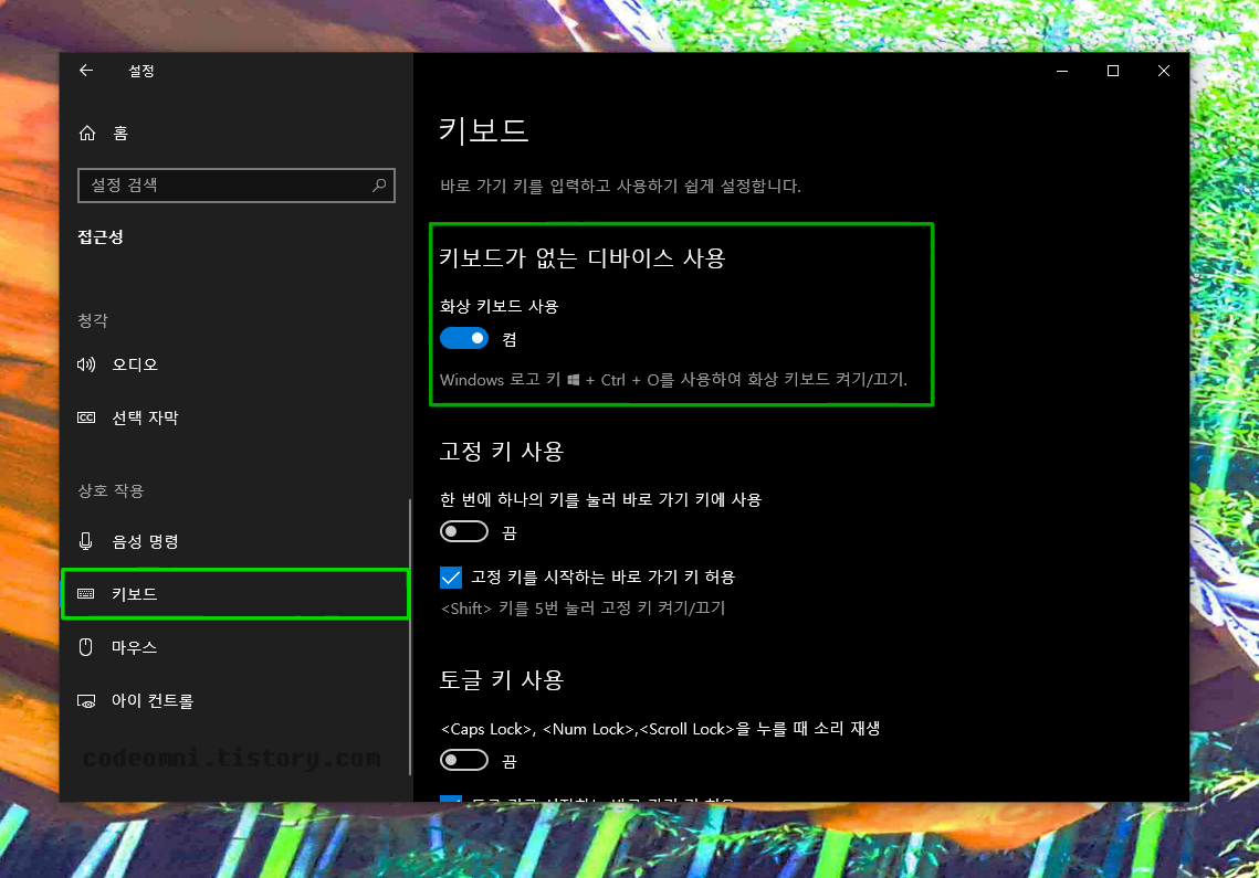 ▲ 윈도우키 + Ctrl + O를 사용하면 화상 키보드를 켜기/끄기 할 수 있습니다.