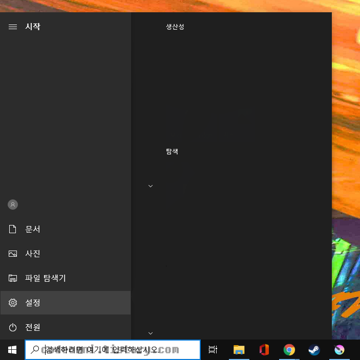 ▲ 윈도우 버튼을 클릭하거나 눌러 설정에 들어갑니다.