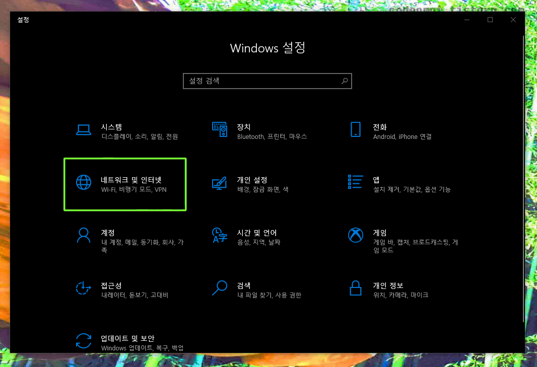 ▲ 설정 중에 네트워크 및 인터넷을 클릭합니다.