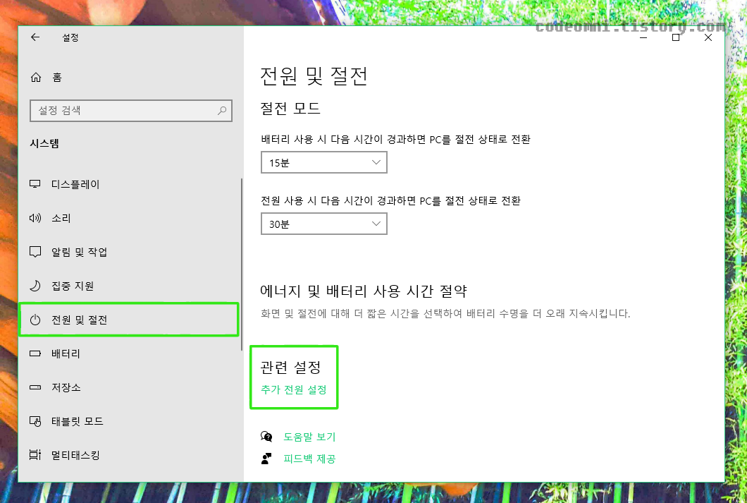 ▲ 스크롤해서 관련 설정에 추가 전원 설정을 클릭합니다.