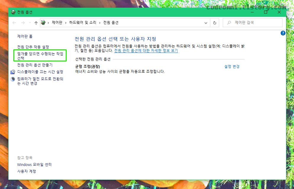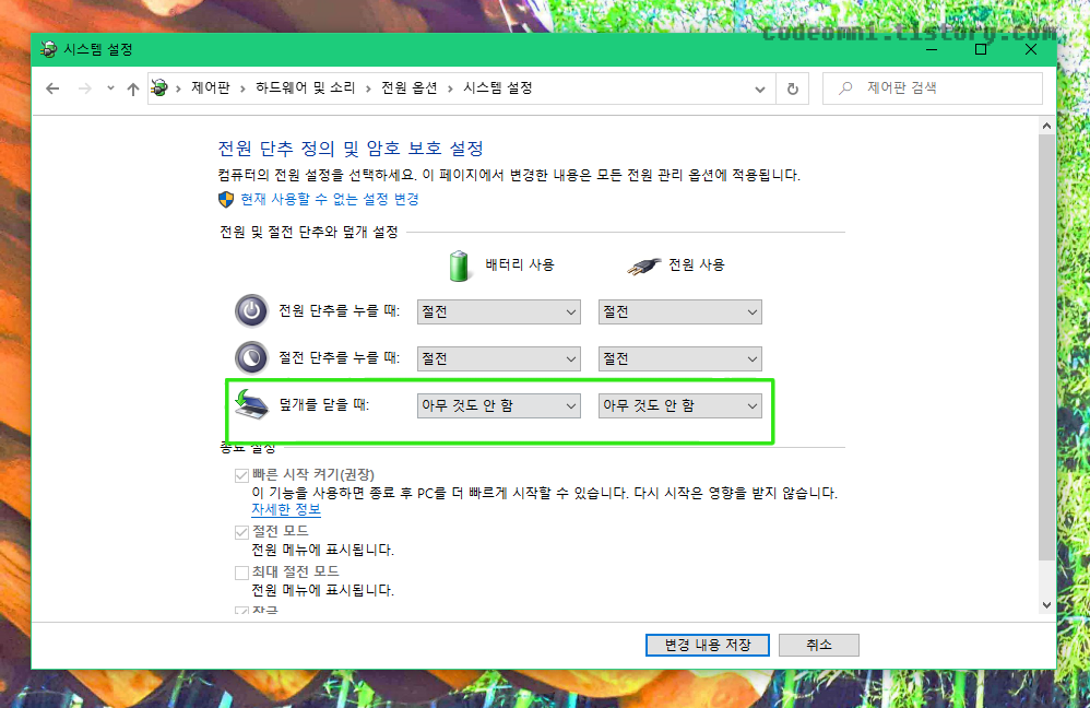 이번 포스팅은 윈도우10 에서 노트북 덮개 설정하기입니다.