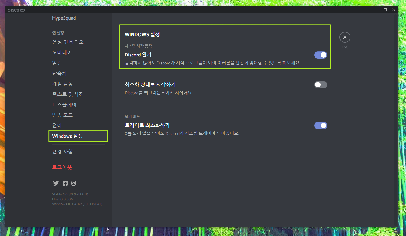 컴퓨터의 전원을 켜면 디스코드가 시작 프로그램이 되어 자동으로 실행됩니다.